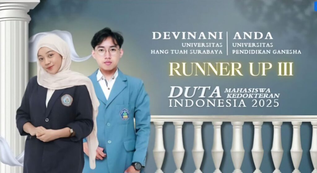 Surabaya, 11 November 2025 — Kabar membanggakan datang dari Fakultas Kedokteran Universitas Hang Tuah (UHT). Dua mahasiswa dari Angkatan 23 berhasil menorehkan prestasi gemilang dalam ajang Duta Mahasiswa Kedokteran Indonesia 2025, yang diselenggarakan oleh Ikatan Senat Mahasiswa Kedokteran Indonesia (ISMKI) bekerja sama dengan Badan Analisis dan Pengembangan Ilmiah Nasional (BAPIN).