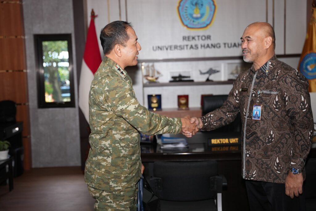 Dalam rangka memperkuat sinergi di bidang pendidikan, Panglima Koarmada II Laksda TNI I G. P. Alit Jaya, S.H., M.Si., melaksanakan kunjungan kepada Rektor Universitas Hang Tuah Laksda TNI (Purn) Dr. Ir. Avando Bastari. Kegiatan tersebut berlangsung di Rupat Rektor UHT, Gedung Enggano, Kamis (5/3), dalam suasana hangat dan penuh keakraban